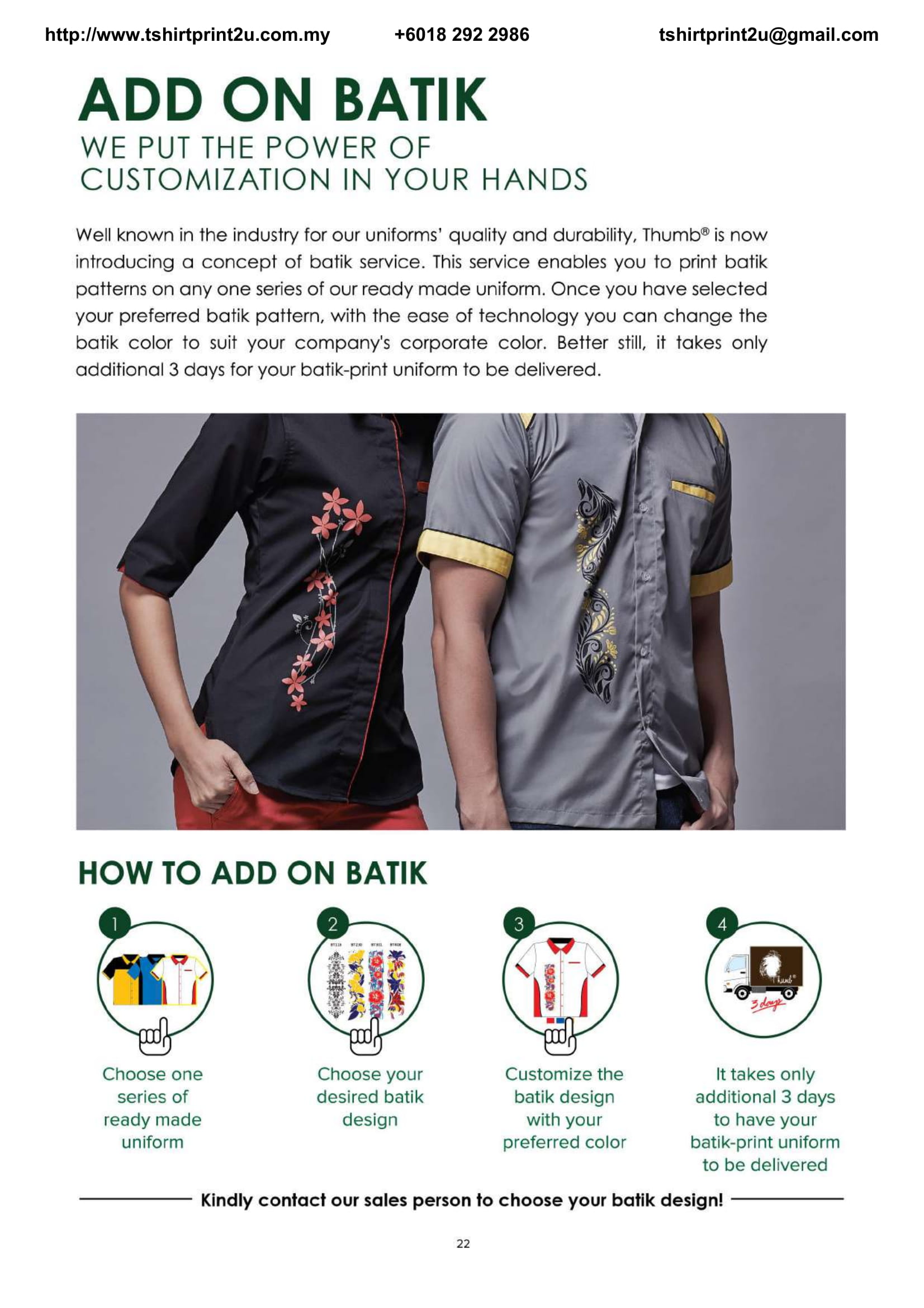 Tshirtprint2u specialized in custom t shirt printing, uniform, jacket, sweatshirt, hoodie and promotional merchandise solution company located in Kuala Lumpur and Ipoh, Malaysia.